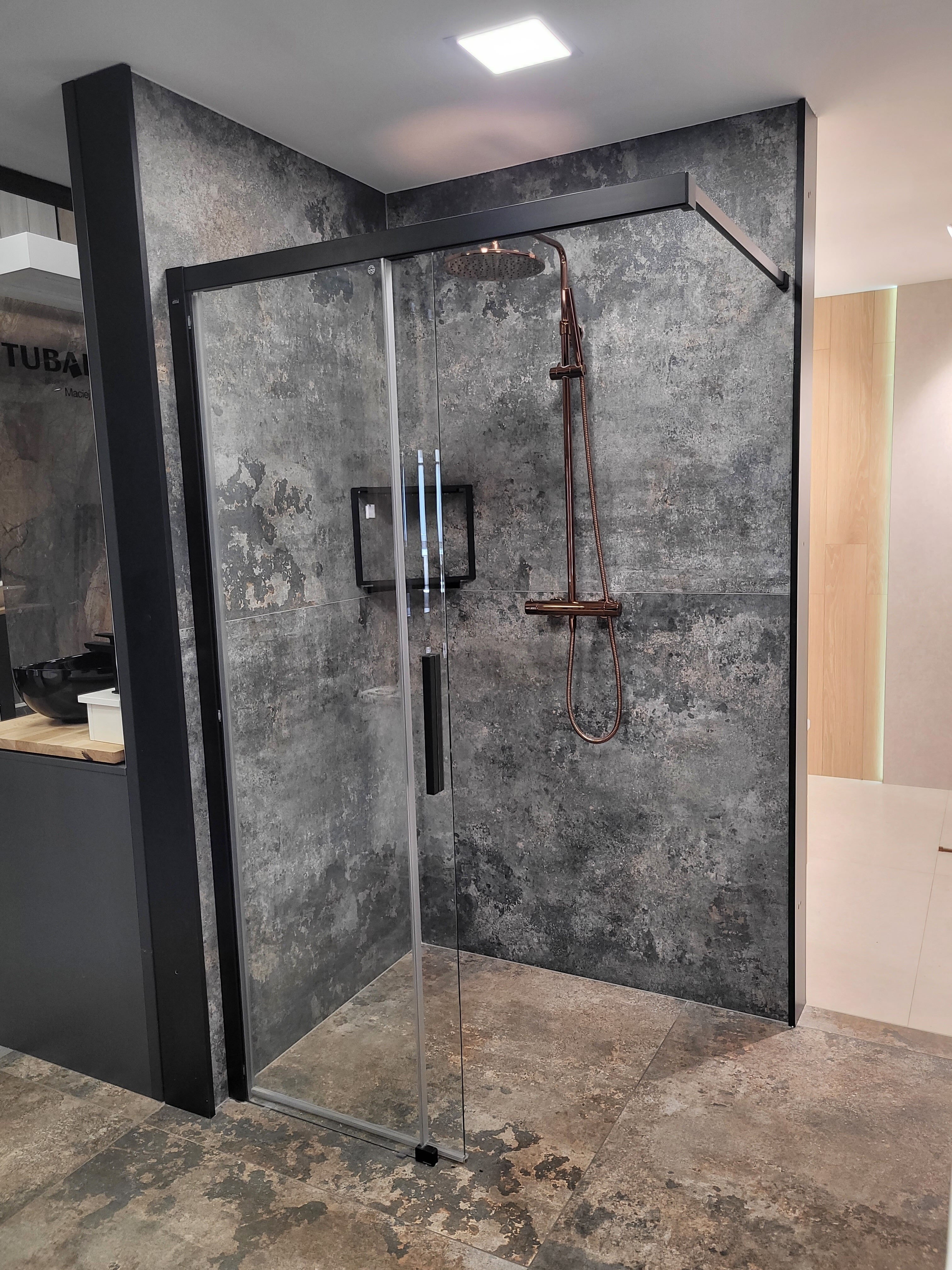 Kabina prysznicowa walk-in 120 cm, kolor czarny, marki Kermi.