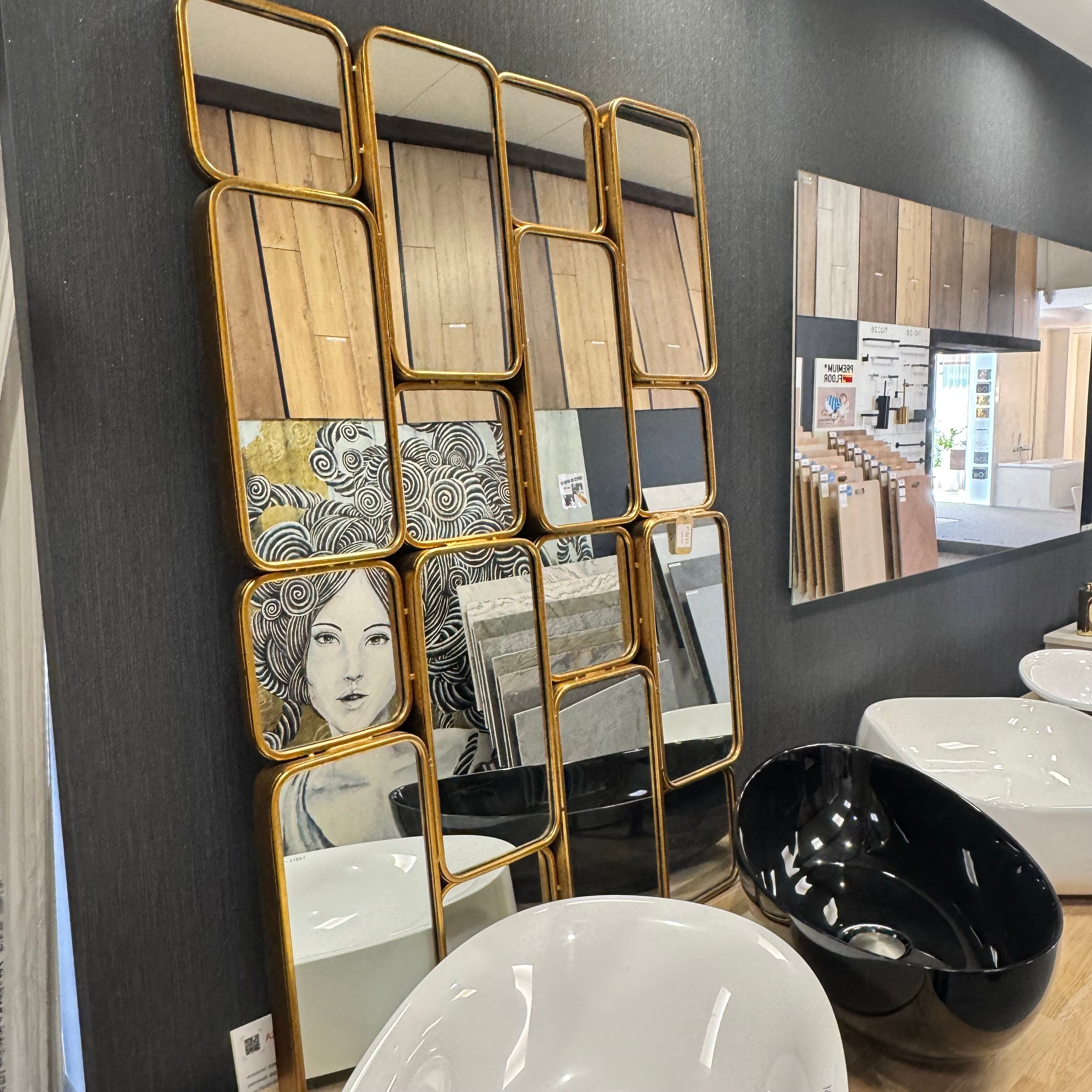 Mirror Birche to wyjątkowe lustro dekoracyjne, składające się z 16 oddzielnych luster w złotej ramie. Idealne do salonu, korytarza, łazienki lub sypialni, dodaje przestrzeni i światła, stając się efektownym elementem dekoracyjnym.