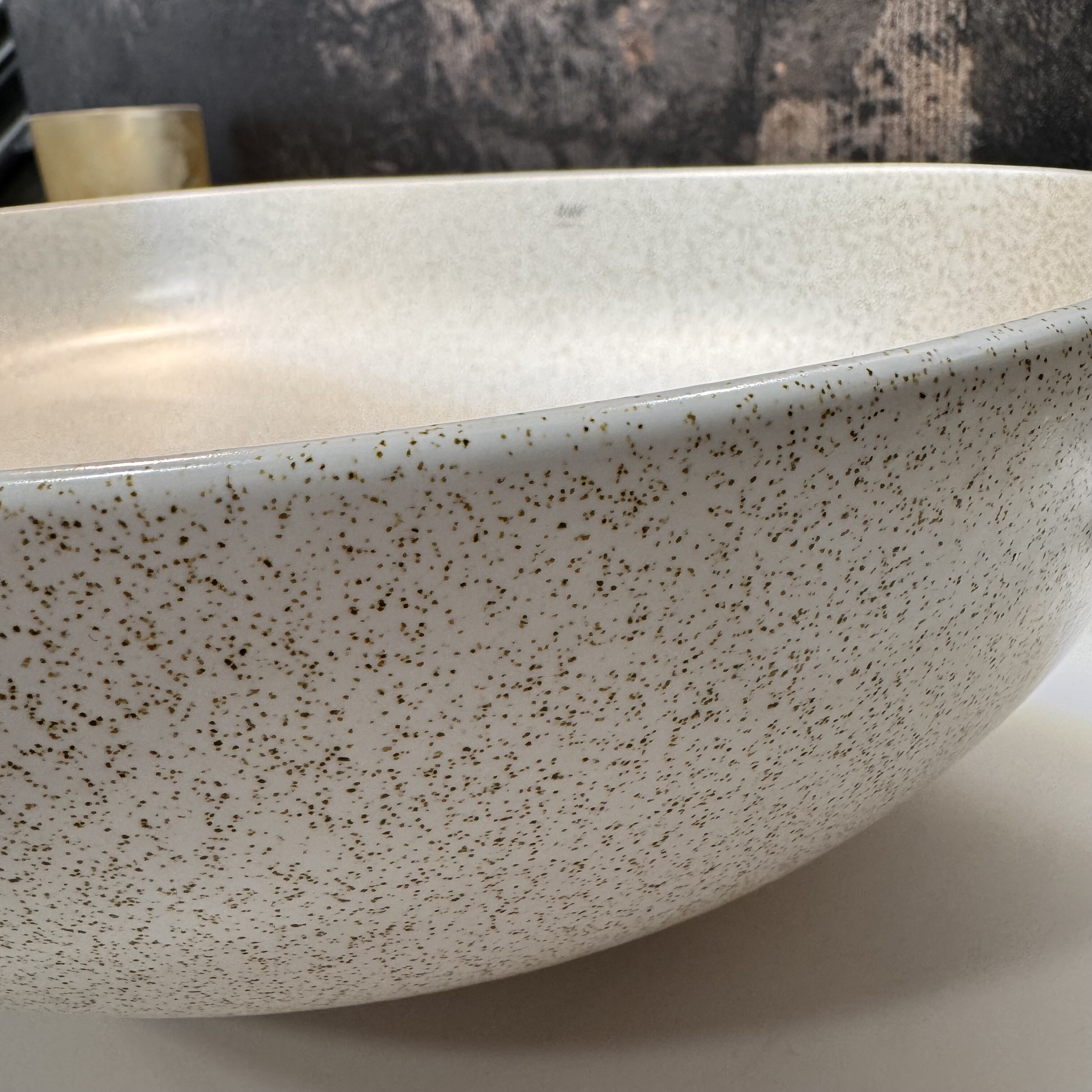 Biała, owalna umywalka nablatowa o wymiarach 60x36 cm. Nowoczesny i minimalistyczny design doskonale wpisuje się w aranżację łazienki. Wykonana z wysokiej jakości materiałów, zapewniająca trwałość i łatwość utrzymania czystości.Ceramika wypalana jest w specjalnych piecach co nadaje jej wyjątkową twardość, trwałość oraz odporność na kwasy, zasady, ścieranie, zadrapania, szkodliwe działanie światła i ekstremalnych temperatur. Nowoczesne metody wypalania pozwalają uzyskać ceramikę o idealnie gładkiej powierzchni, na której nie osadza się brud czy kamień.