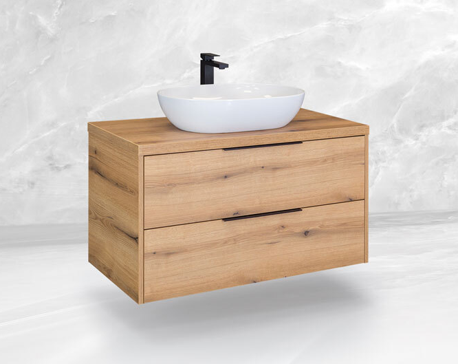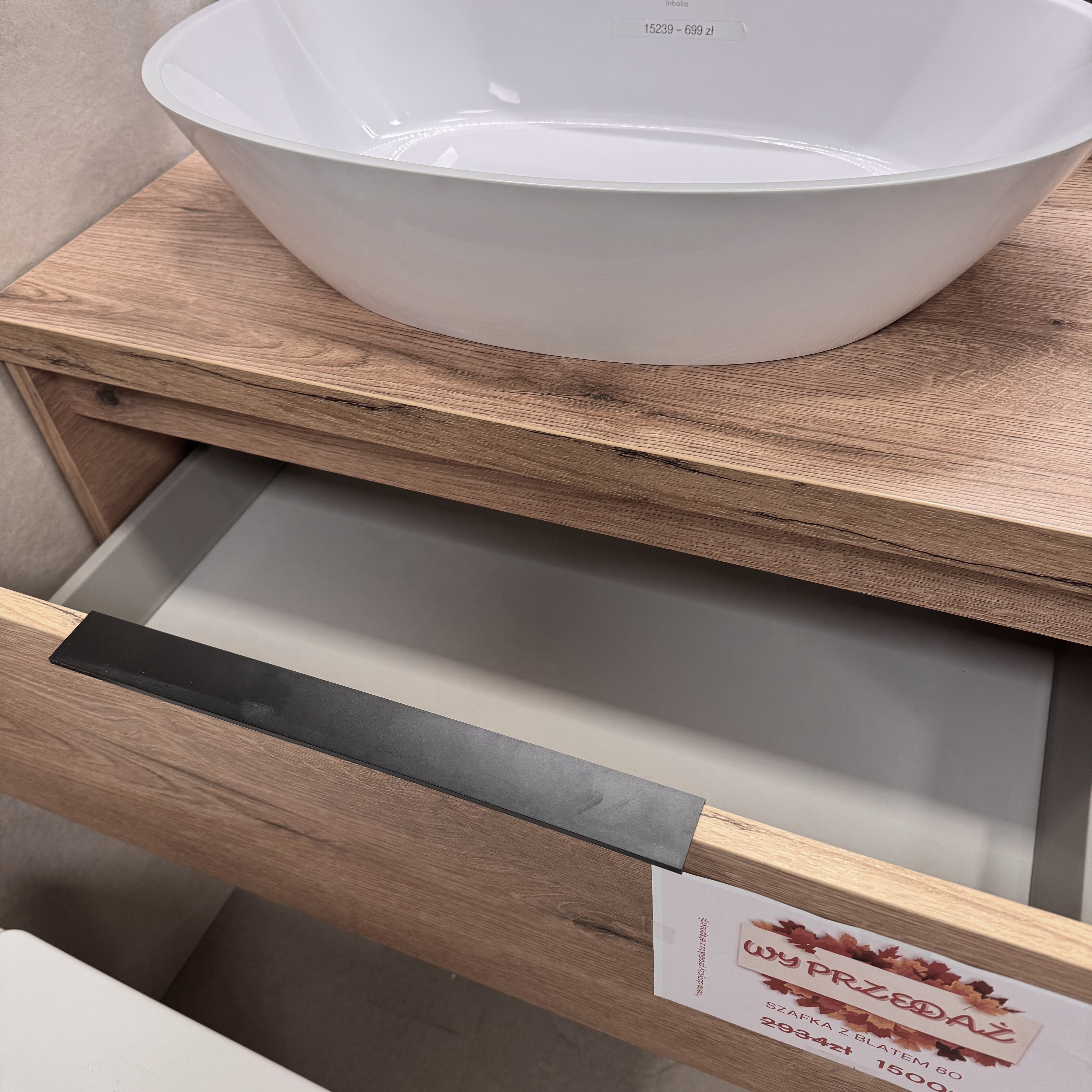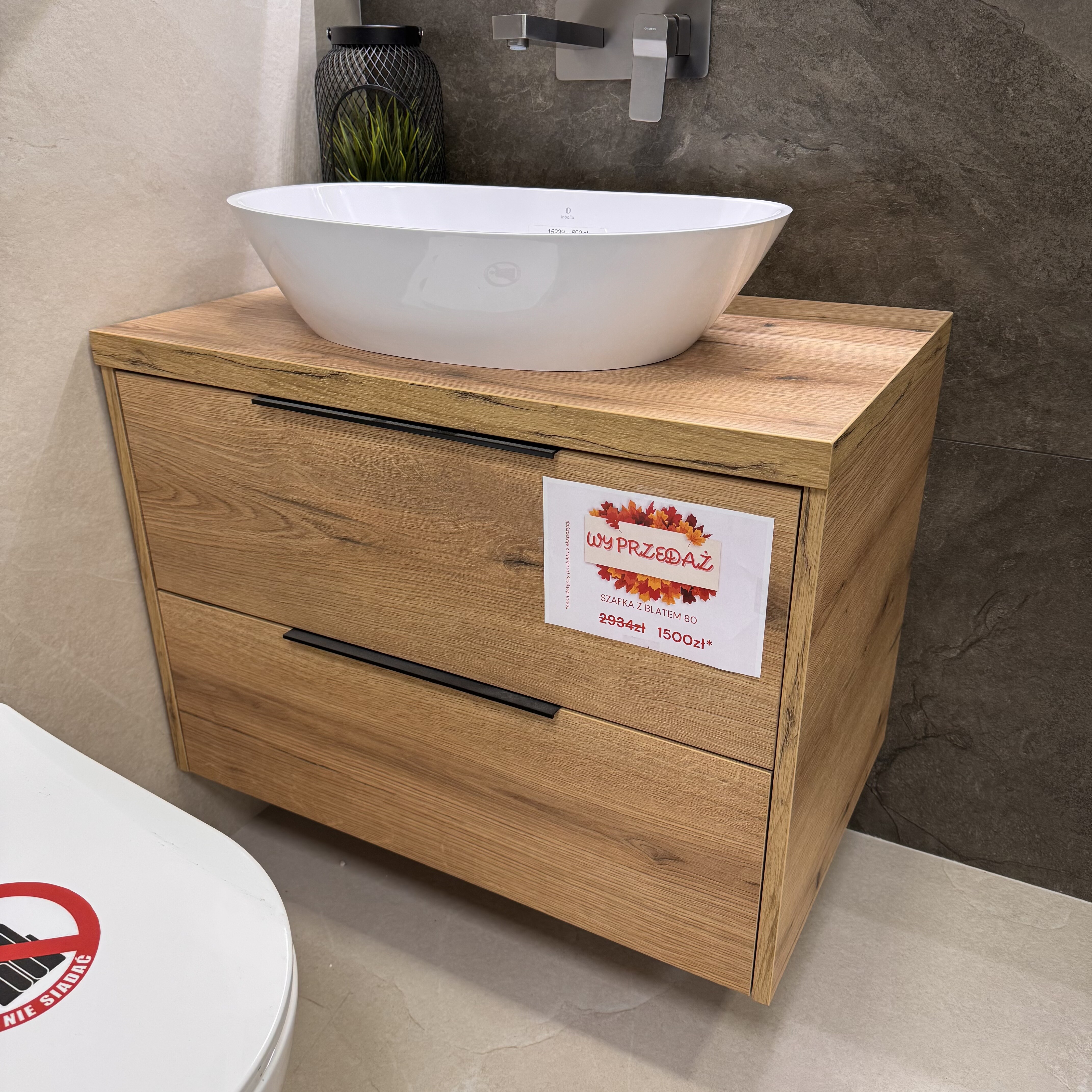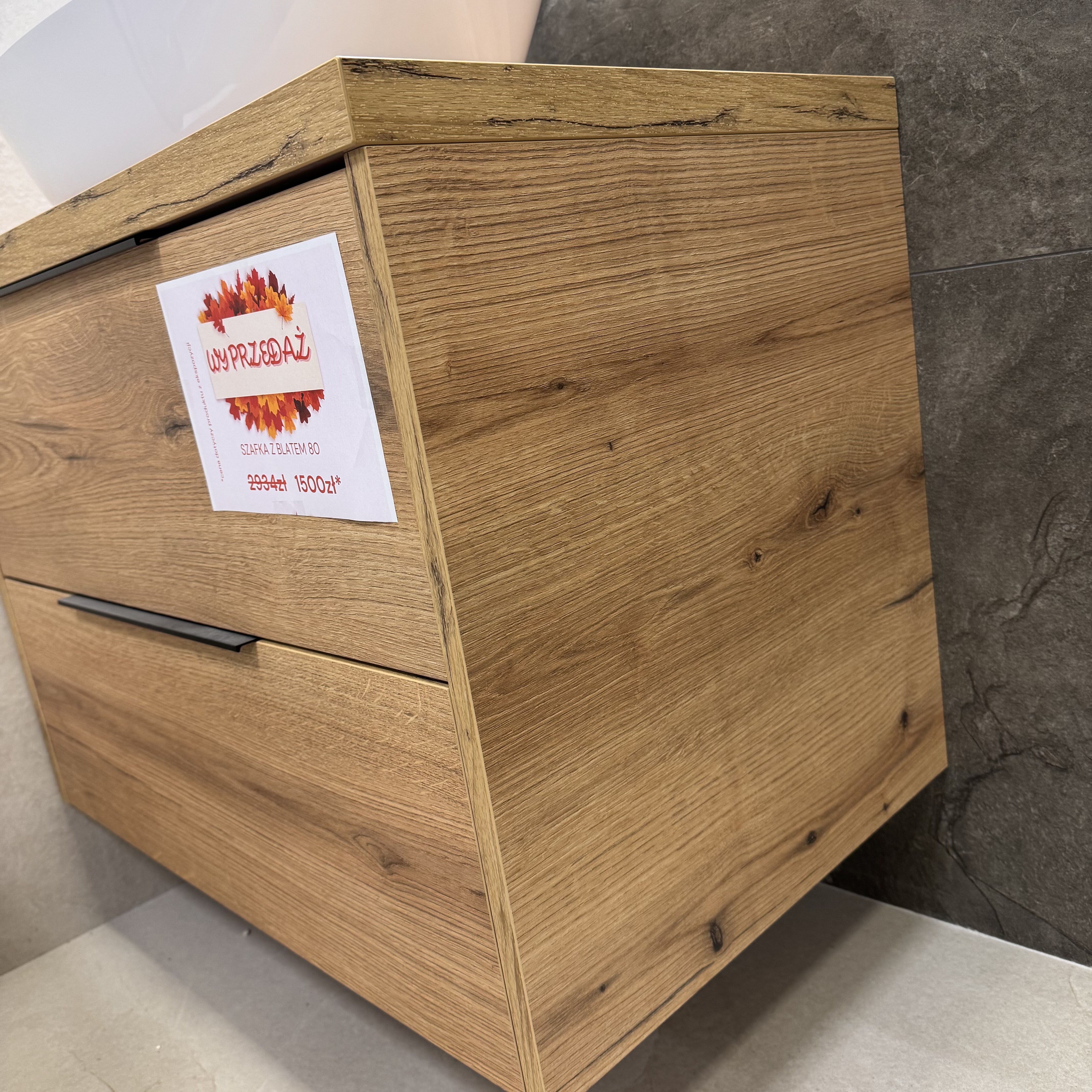 Stylowa, drewniany look szafka pod umywalkę o wymiarach 80 cm.